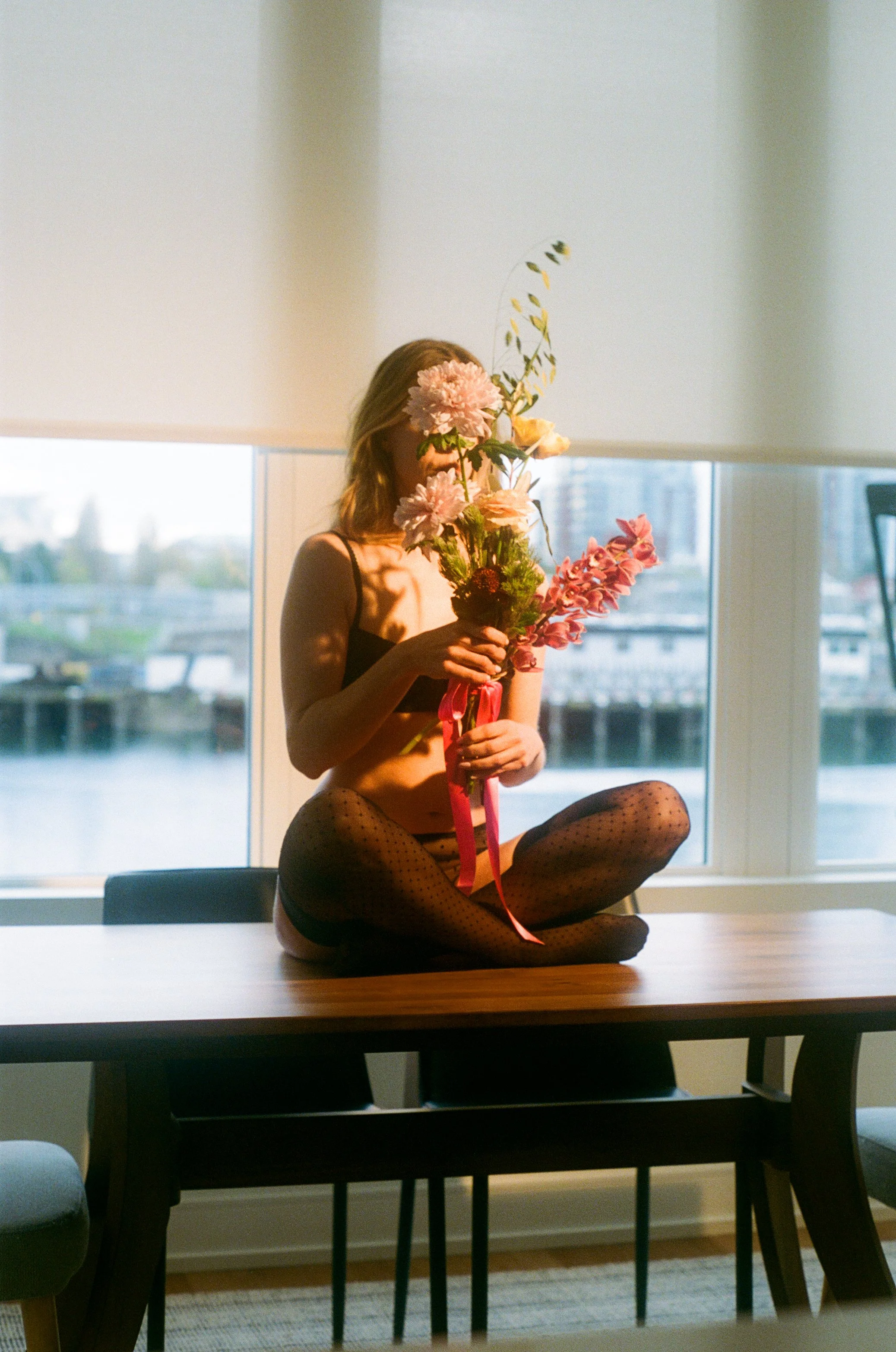 I am in my late thirties, with a petite, natural body that I know very well. My favourite state to exist in feels warm, soft, fresh and primal. I have a playful yet refined style, always prioritizing comfort over performance for both of us.